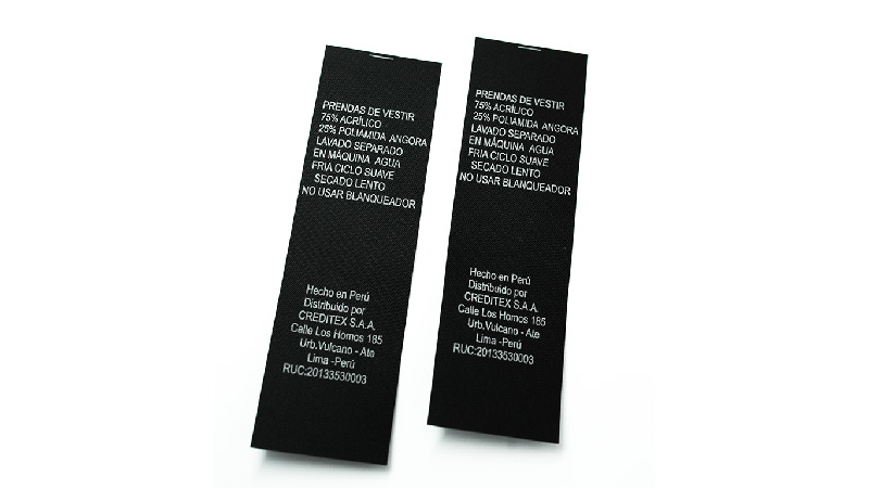 Etiquetas Estampadas de Algodon según los requerimientos de los clientes; podemos fabricas las etiquetas en colores para diferentes usos de productos que requieren un alto cuidado y que tengan un valor agregado. Etiquetas de Marca Etiquetas de Talla Etiquetas de Instrucción de lavado Etiquetas tipo clip. Etiquetas Estampadas, dale un valor agregado a tus productos con etiquetas 100% algodón.